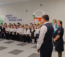 В ходе встречи госавтоинспектор рассказал первоклассникам о том, как правильно вести себя на дорогах, пешеходных переходах, в личном и общественном транспорте.
